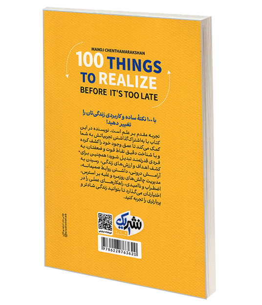 اگر به دنبال کتابی الهامبخش و پر از بینشهای کاربردی برای رشد فردی و آرامش ذهنی هستید، کتاب 100 چیزی که باید (قبل از اینکه خیلی دیر شود) درک کنید، نوشتهی مانوج چنتاماراکشان انتخابی ارزشمند است؛ این کتاب، تلنگری است برای بیدارشدن از خواب روزمرگی و در دنیایی پر از دغدغه، فشارهای اجتماعی و بیمعناییهای روزمره، همچون چراغی مسیر آگاهی و خودشناسی را روشن میکند. با مطالعهی این اثر، میتوانید نگرش خود را به زندگی، روابط، موفقیت، زمان، آرامش، خشم، امید، هدف و بسیاری از مفاهیم مهم دیگر، بازآفرینی کنید.